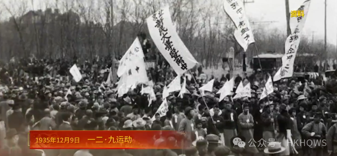1935年12月9日,北平学生在中共地下组织的领导下,举行了声势浩大的抗日救亡游行。 图源:《党史上的今天》视频截图
