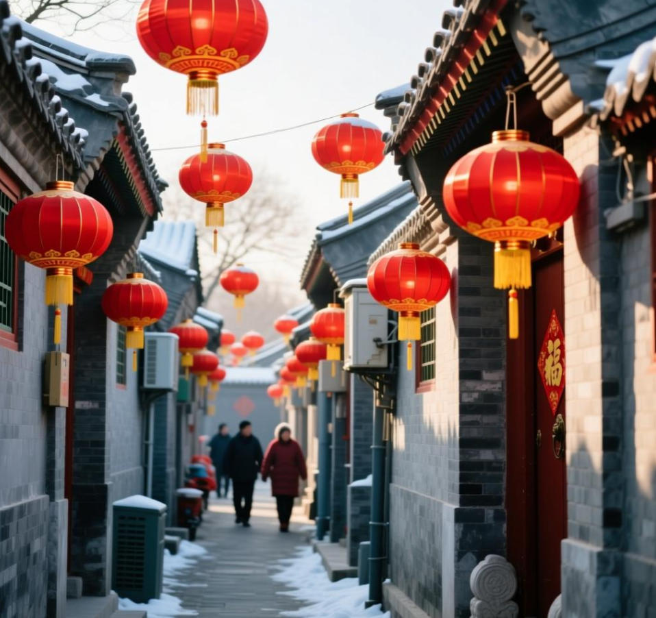 城市脉搏:从北京胡同的红灯笼到广州花市的年桔,全国城市用独特方式诠释新年韵味。