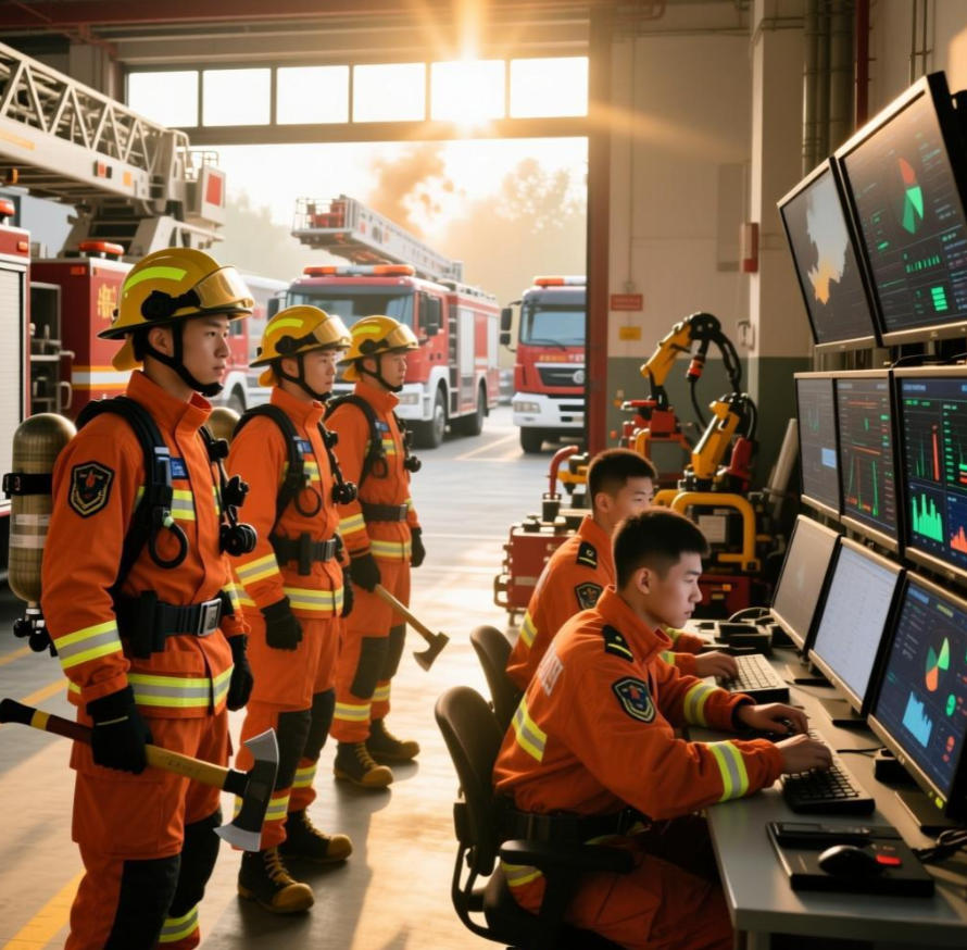 消防官兵:消防站里整装待发的橙色身影和火情监控屏前坚守的年轻面庞,成为守护和保障人民生命财产安全的坚强后盾。